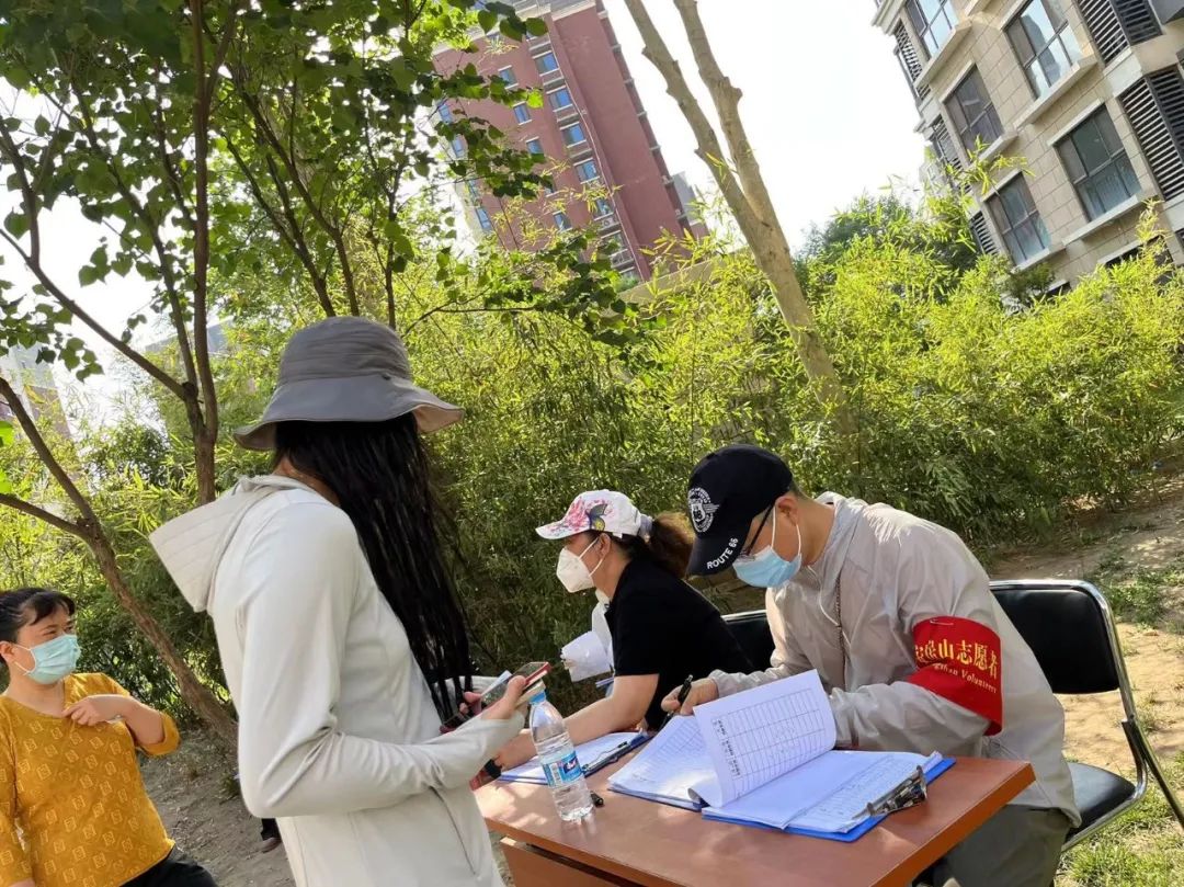 訴訟部的張亮化身 “大白”,為居民登記核酸檢測信息、維持現場秩序、檢查健康碼。