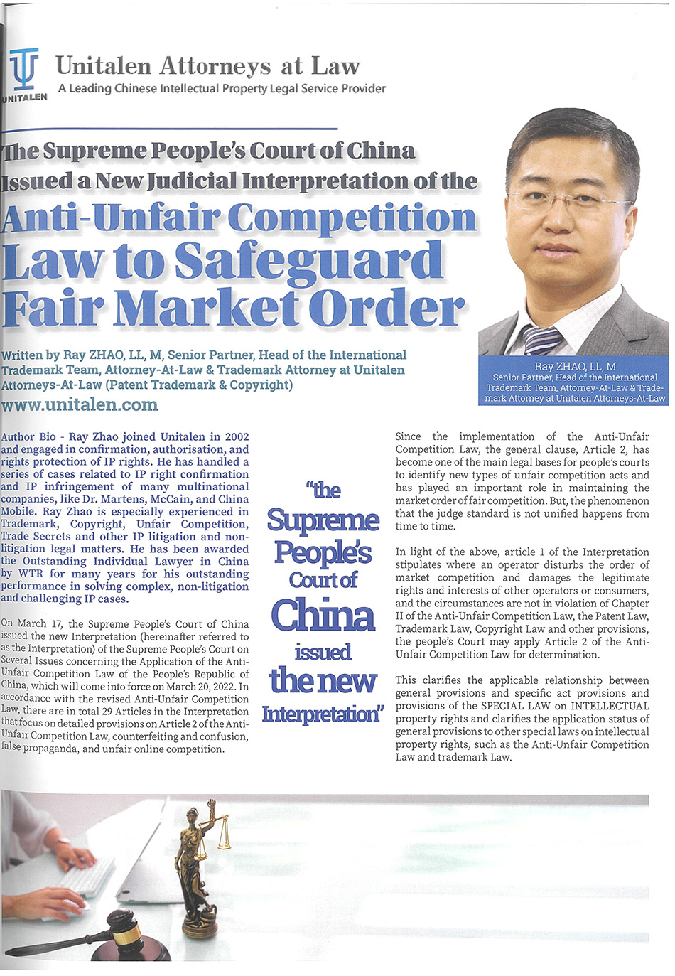 集佳合伙人趙雷律師文章《Interpretation of the new Guidelines for trademark examination》在《2022 Global IP Directory》上發表