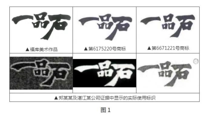 2016年6月,鄭某紅、一品石公司以侵害其注冊商標專用權為由,將青島福庫公司訴至廣東省深圳市中級人民法院。2017年5月,青島福庫公司以鄭某紅、一品石公司使用“一品石”商標侵害其“一品石”美術作品著作權為由,將鄭某紅、一品石公司也訴至廣東省深圳市中級人民法院。