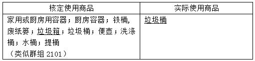由上表可知,系爭商標僅使用在一個商品,即“垃圾桶”上。并且,“垃圾桶”就是其核定使用商品之一,顯然在該商品上的商標使用應該被認可。