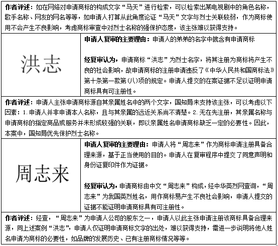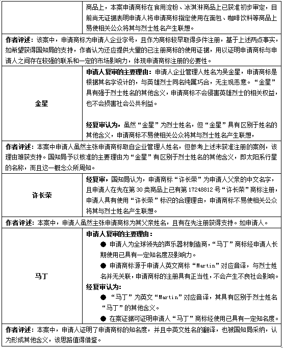 綜上分析,縱然從商標申請人的角度出發,其申請商標具有一定的合理來源,其商標使用難以使消費者聯想到烈士名稱,但從以上案例可以看出,在商標申請的審查階段,國知局對烈士名稱采取強保護的態度,申請人在遭遇商標與烈士名稱沖突的情況下,需謹慎對待,從商標來源、已取得注冊商標的情況、企業發展及商標使用現狀等多角度舉證,以期獲得商標注冊。