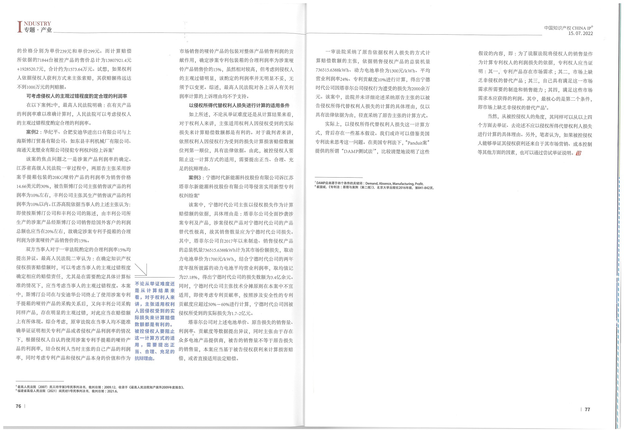 集佳文章《以侵權所得代替權利人損失計算損害賠償額的探討》在《中國知識產權》發表