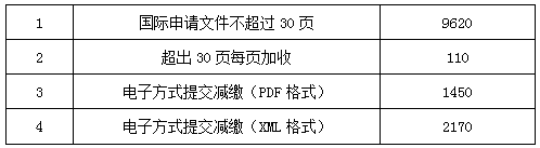 PCT申請國際階段費用標準 (金額單位:人民幣 元)