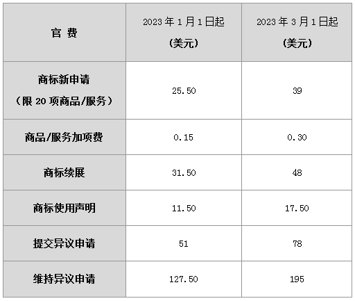 涉及商標相關業務的最新收費以及實施階段具體如下(依據2022 年 12 月 27 日的匯率):