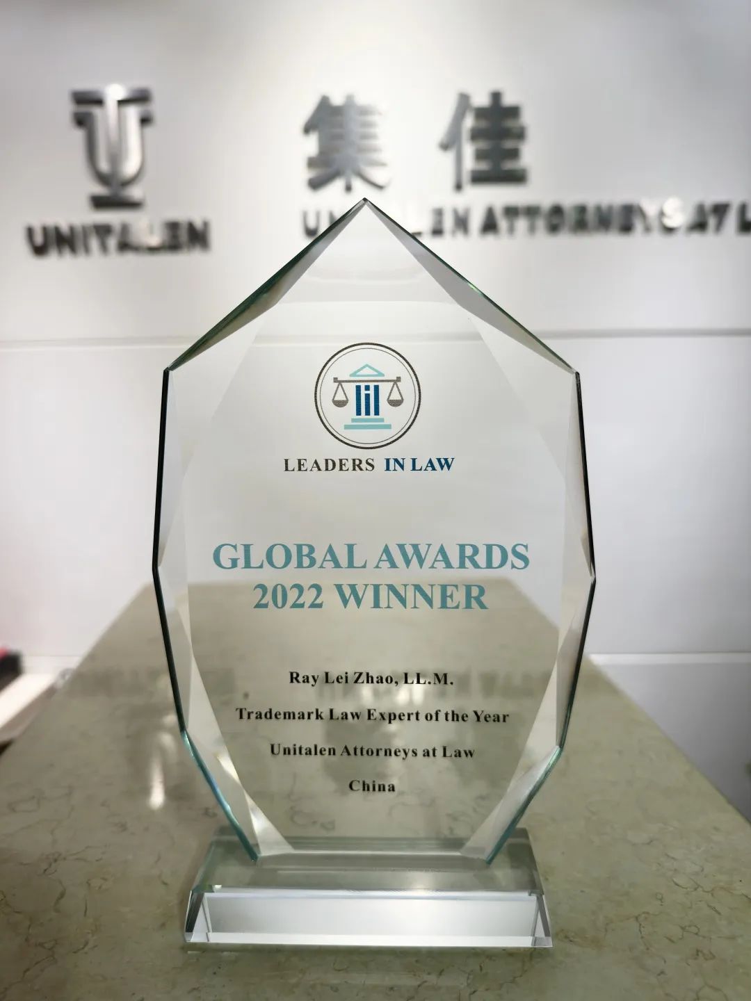 近日,集佳高級合伙人趙雷律師收到Leaders in Law-2022 Global Awards評選委員會通知,被授予Trademark Law Expert of the Year(年度商標法律專家)稱號。