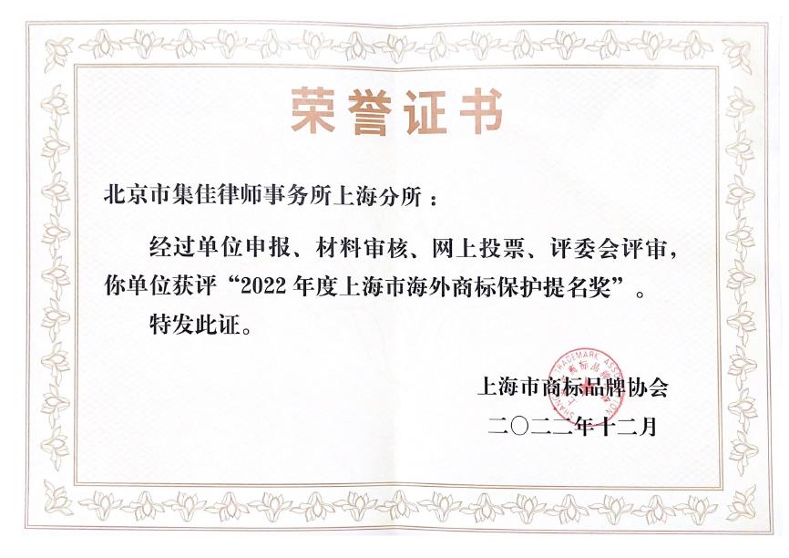 Unitalen Shanghai Branch was awarded the "Outstanding Trademark Agency Case in Shanghai from 2021-2022" for its outstanding work over the "吳良材(Wu Liangcai)" trademark infringement and unfair competition case. Additionally, Unitalen Shanghai Branch was awarded the "Overseas Trademark Protection Nomination Award in Shanghai in 2022".