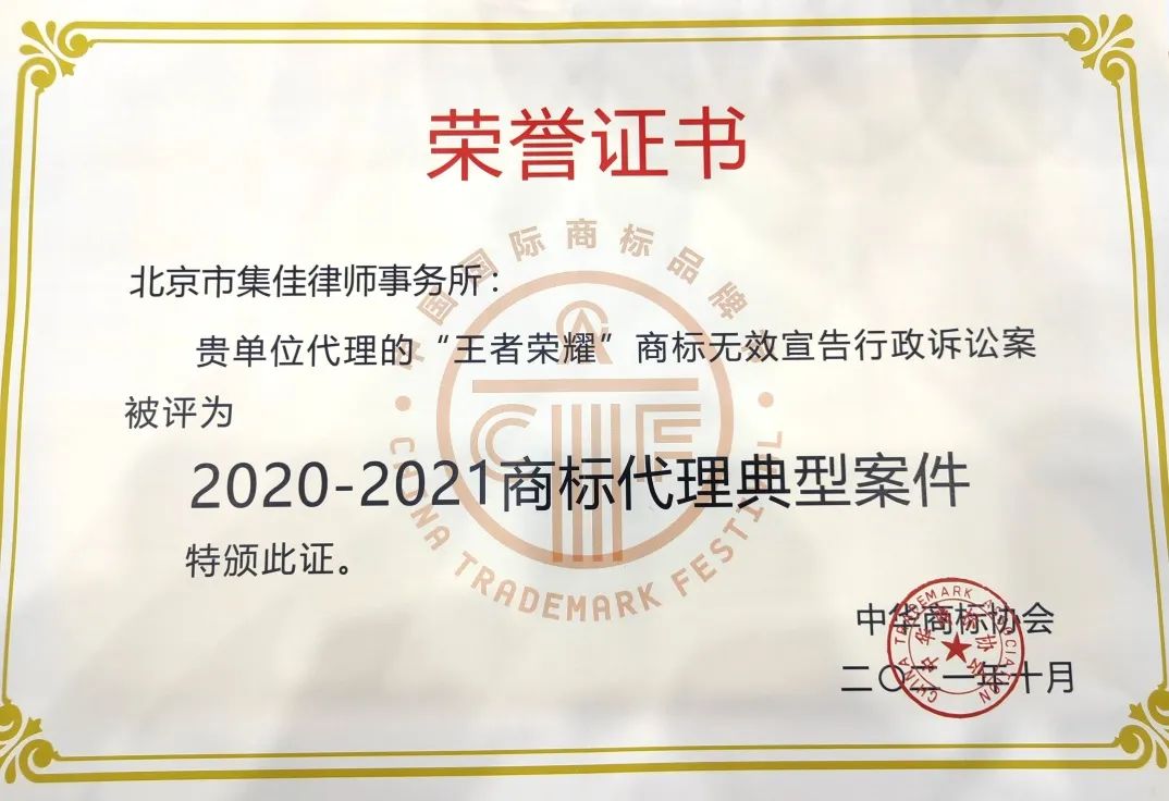 商標節佳訊|集佳代理的王者榮耀案與OPPO案雙雙入選“2020-2021商標代理典型案件”