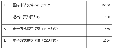 PCT申請國際階段費用標準(金額單位:人民幣 元)