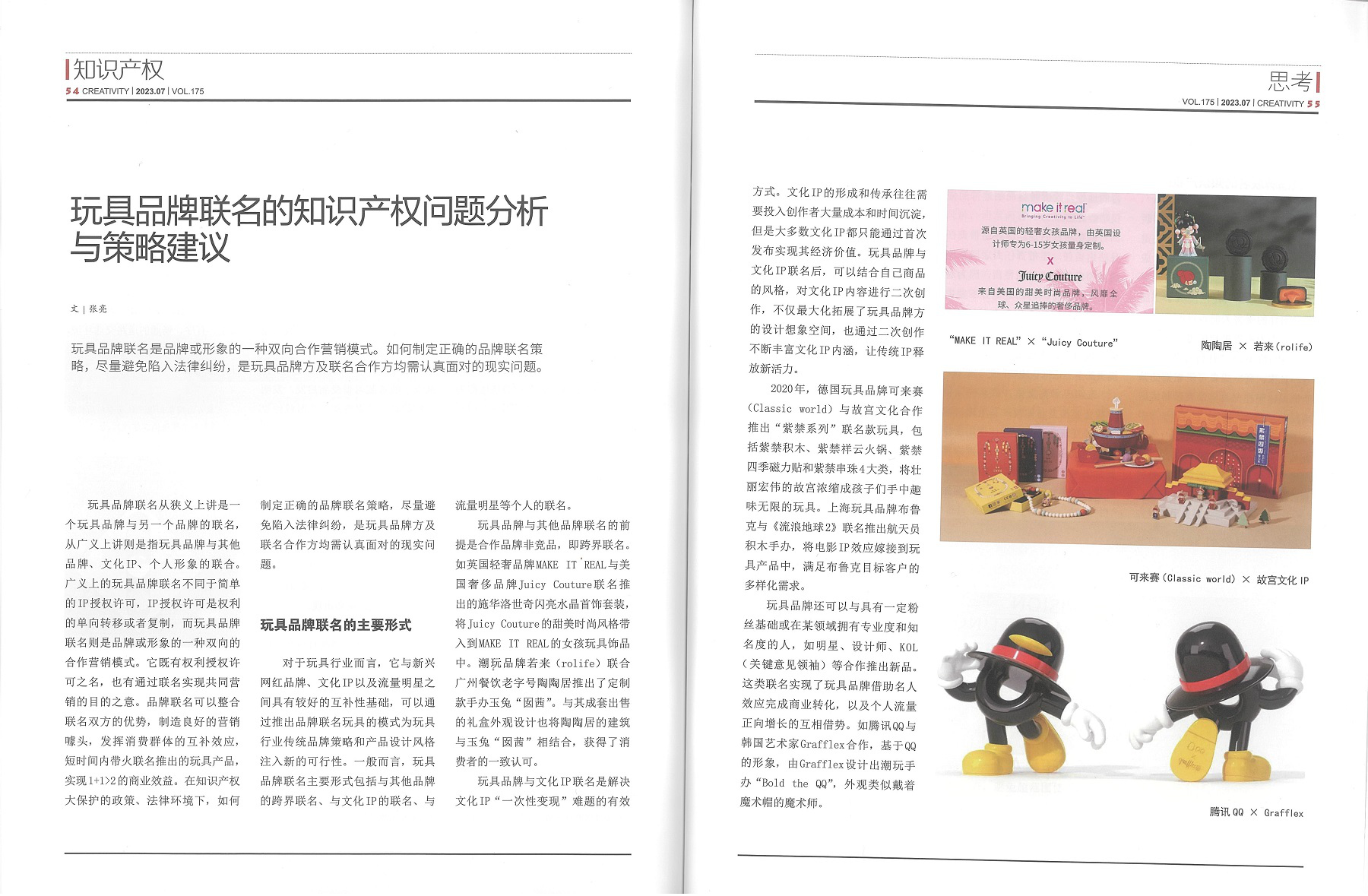 集佳文章《玩具品牌聯名的知識產權問題分析與策略建議》在《創意世界》發表