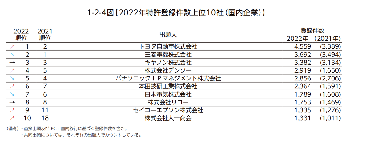 前10大日本國內企業發明專利注冊量: