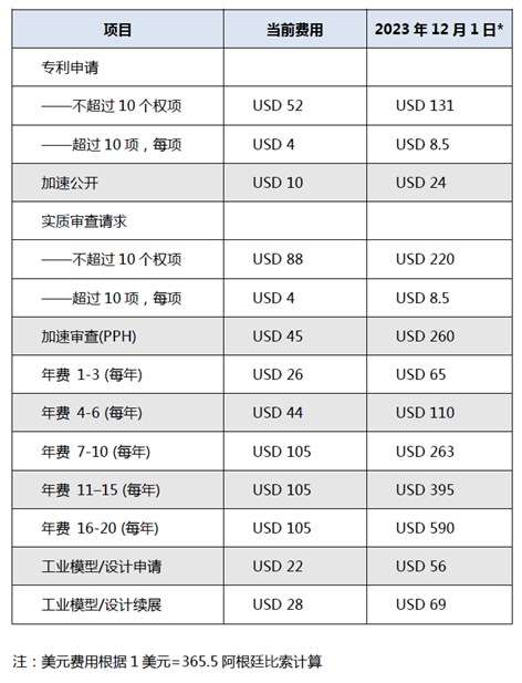 • > 集佳知識產權代理有限公司 > 集佳周訊 > 2023年 > 集佳周訊2023年第48期 > 熱點聚焦 > 阿根廷官費上調