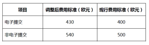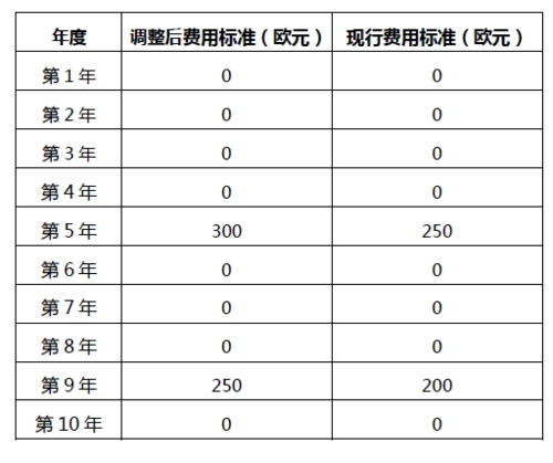延長補充保護證書期限申請費:550 歐元(當前為500 歐元)