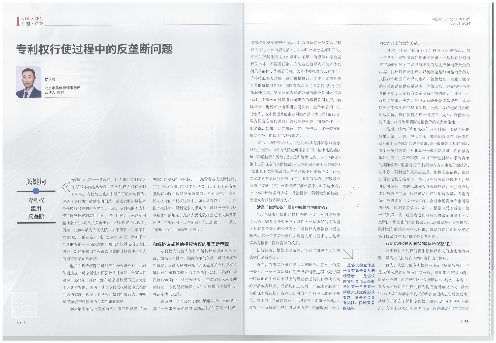 首頁 > 集佳知識產權代理有限公司 > 理論研究 > 媒體報道 > 集佳文章《專利權行使過程中的反壟斷問題》在《中國知識產權》發表