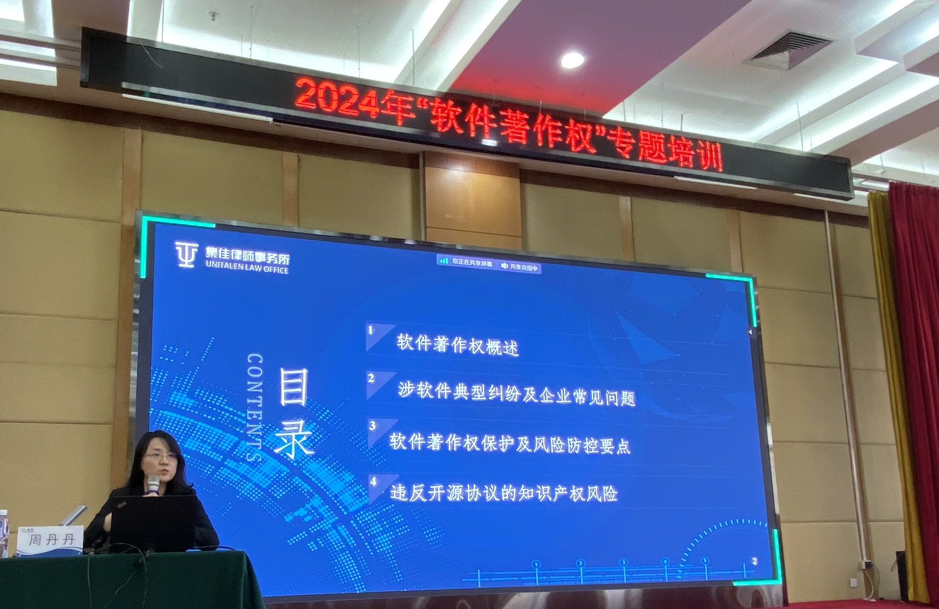 近日,集佳合伙人律師周丹丹、律師曹陽應邀為同方威視軟件研發人員提供“2024年軟件著作權專題培訓”。周丹丹律師在鋪墊了軟件著作權保護的條件、軟件著作權糾紛案件類型等相關基本法律知識的基礎上,結合“寶利通訴小魚易連案”等典型案例,對各類型案件中如何舉證及法院認定進行了詳細解讀;進而以案例為引,總結提煉軟件著作權登記的注意事項,源代碼保護及權利軟件使用證據沉淀,軟件開發合同、合作開發合同中涉及權利歸屬約定、開發需求明確、交付等核心條款如何約定,軟件采購及合規使用等方面的實務要點,為研發人員日常工作中可能遇到的軟件相關問題答疑解惑。曹陽律師結合羅盒訴玩友案,分享了開源軟件合規使用相關要點。