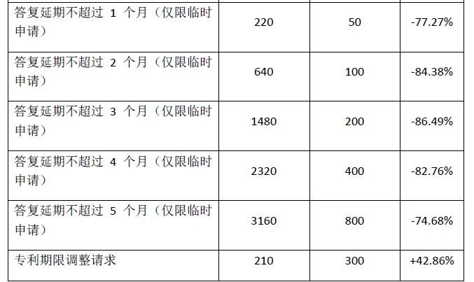 ? 降低臨時申請的延期答復費用;