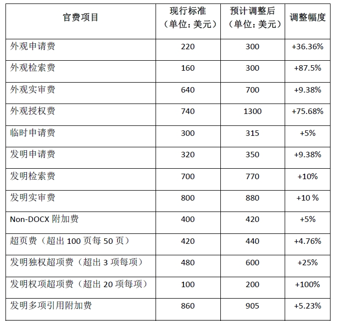 ? 提高外觀設計申請費用,以應對通貨膨脹;