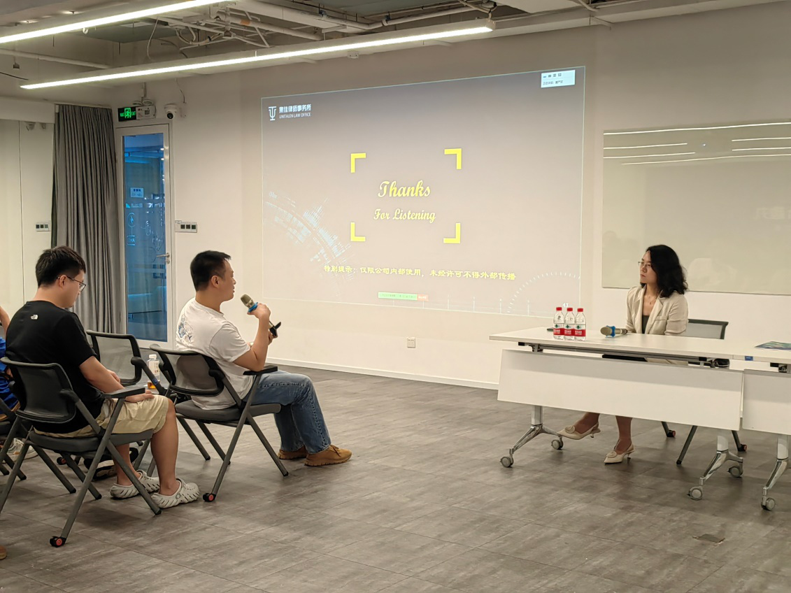 周丹丹律師在介紹了生成式人工智能發展歷程的基礎上,結合近幾年國內外發生的人工智能領域的典型案例及相關法律法規規定,就企業在人工智能開發與使用過程中最為困擾和關注的實務問題進行了開放式的講解和答疑,如采集第三方數據用戶數據訓練是侵權還是合理使用?人工智能生成內容是否有著作權及權利歸屬如何判斷?人工智能生成內容是否存在著作權侵權風險?人工智能產品生成內容侵權的責任承擔主體?開源大模型與開源軟件是一回事嗎?使用人工智能產品是否會造成數據或隱私泄露等等。在以上問題深入講解及探討的基礎上,進一步總結人工智能數據訓練、開源大模型開發及人工智能服務使用的法律風險及應對,為企業以合法合規的姿態擁抱人工智能答疑解惑。
