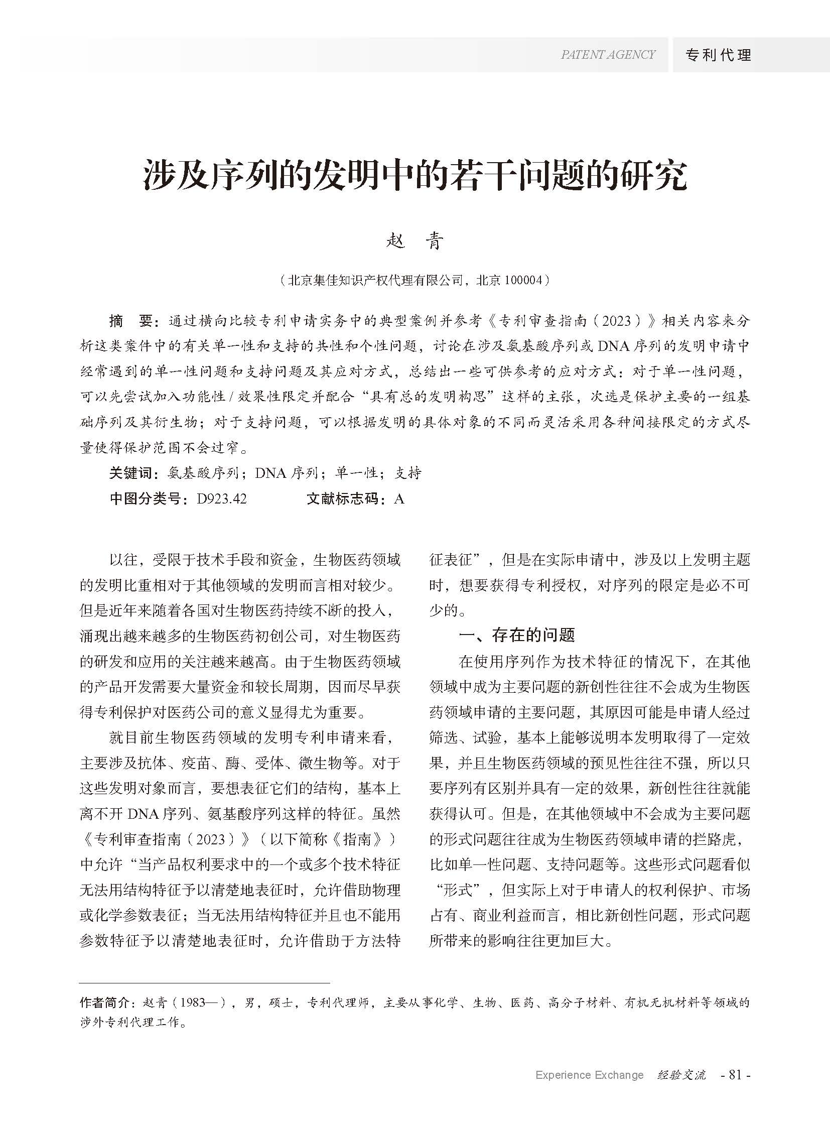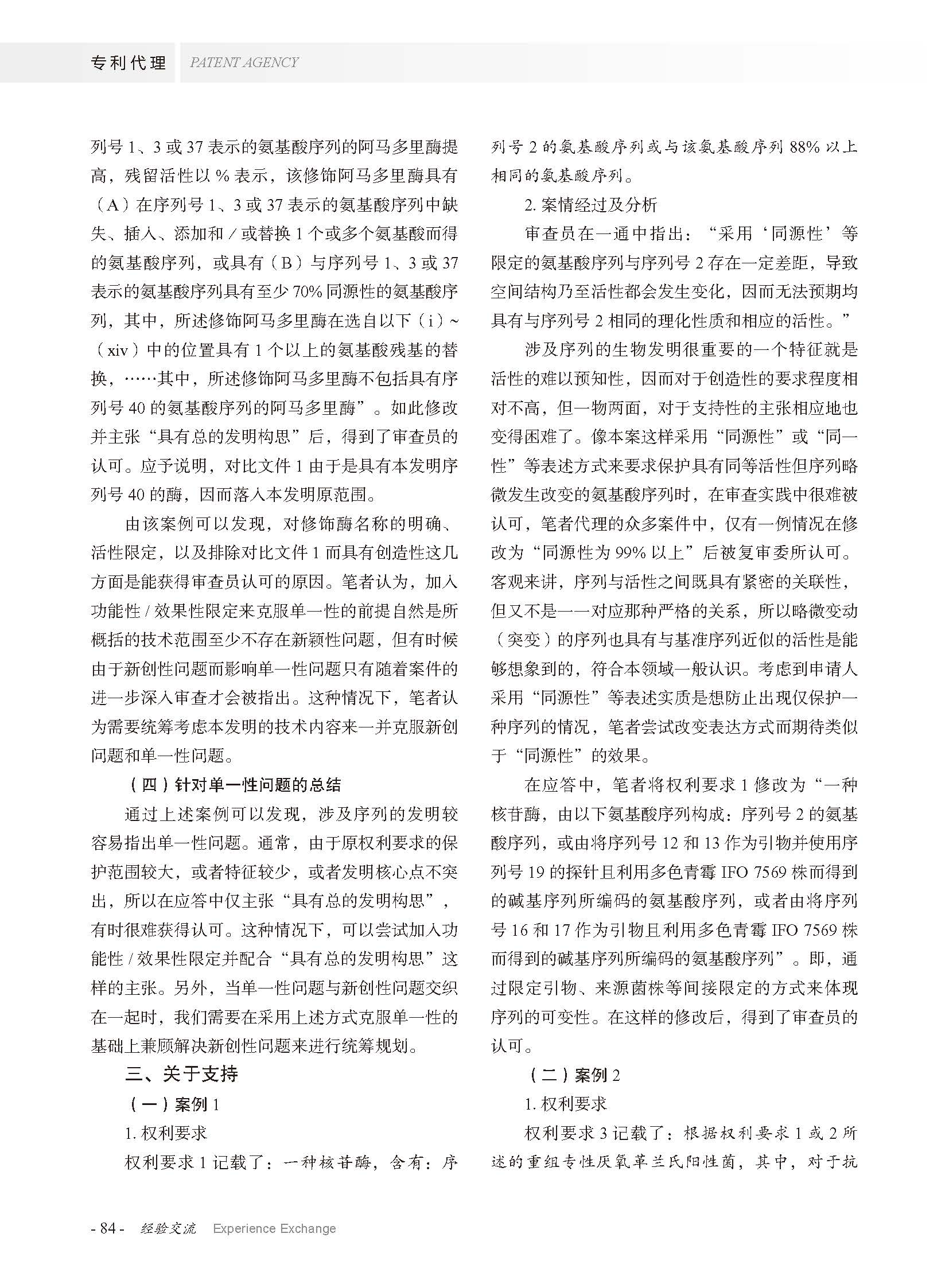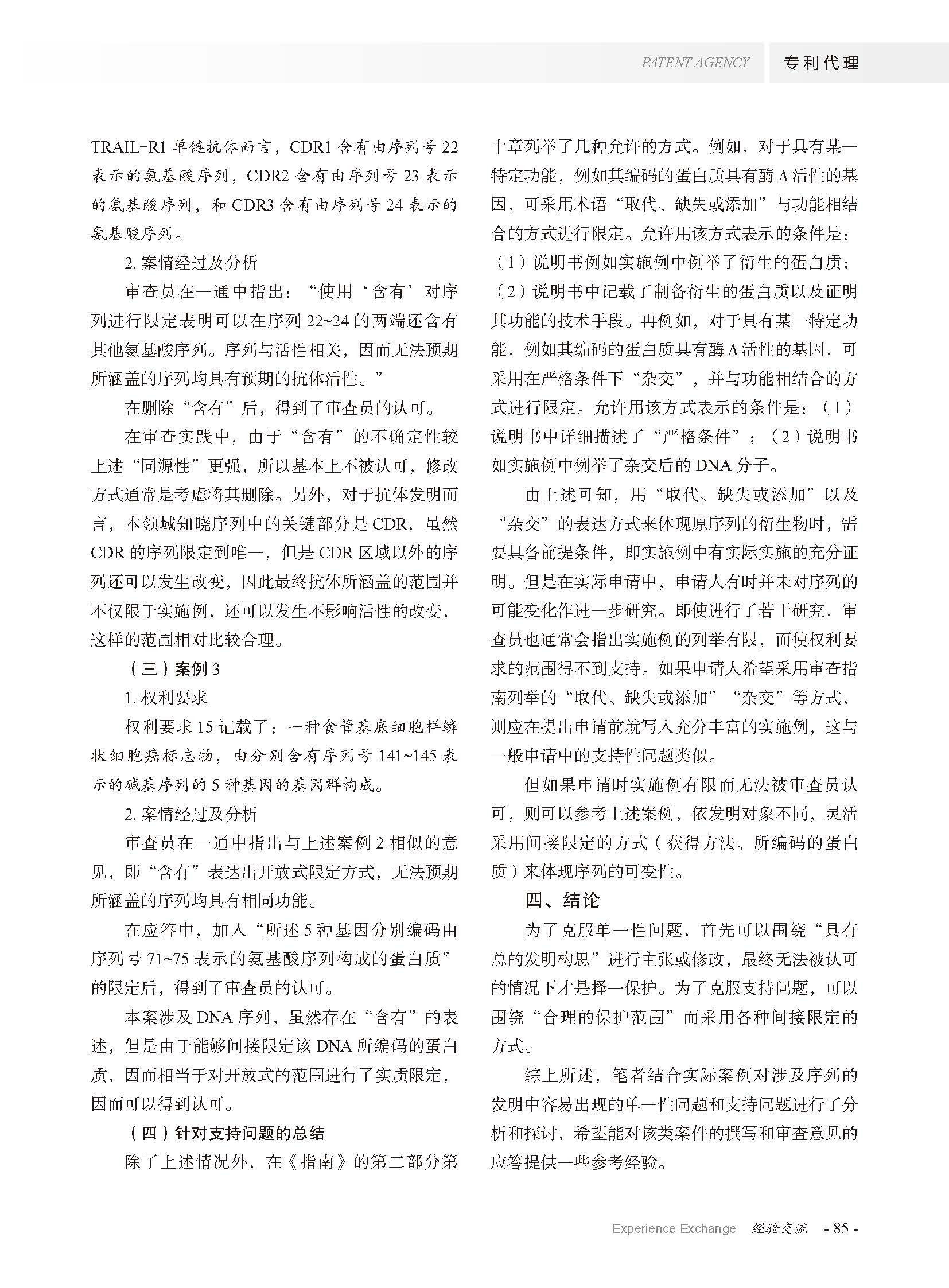 集佳文章《涉及序列的發明中的若干問題的研究》在《專利代理》發表