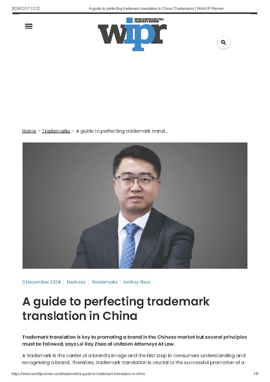 集佳文章《A guide to perfecting trademark translation in China》在《wipr》發表