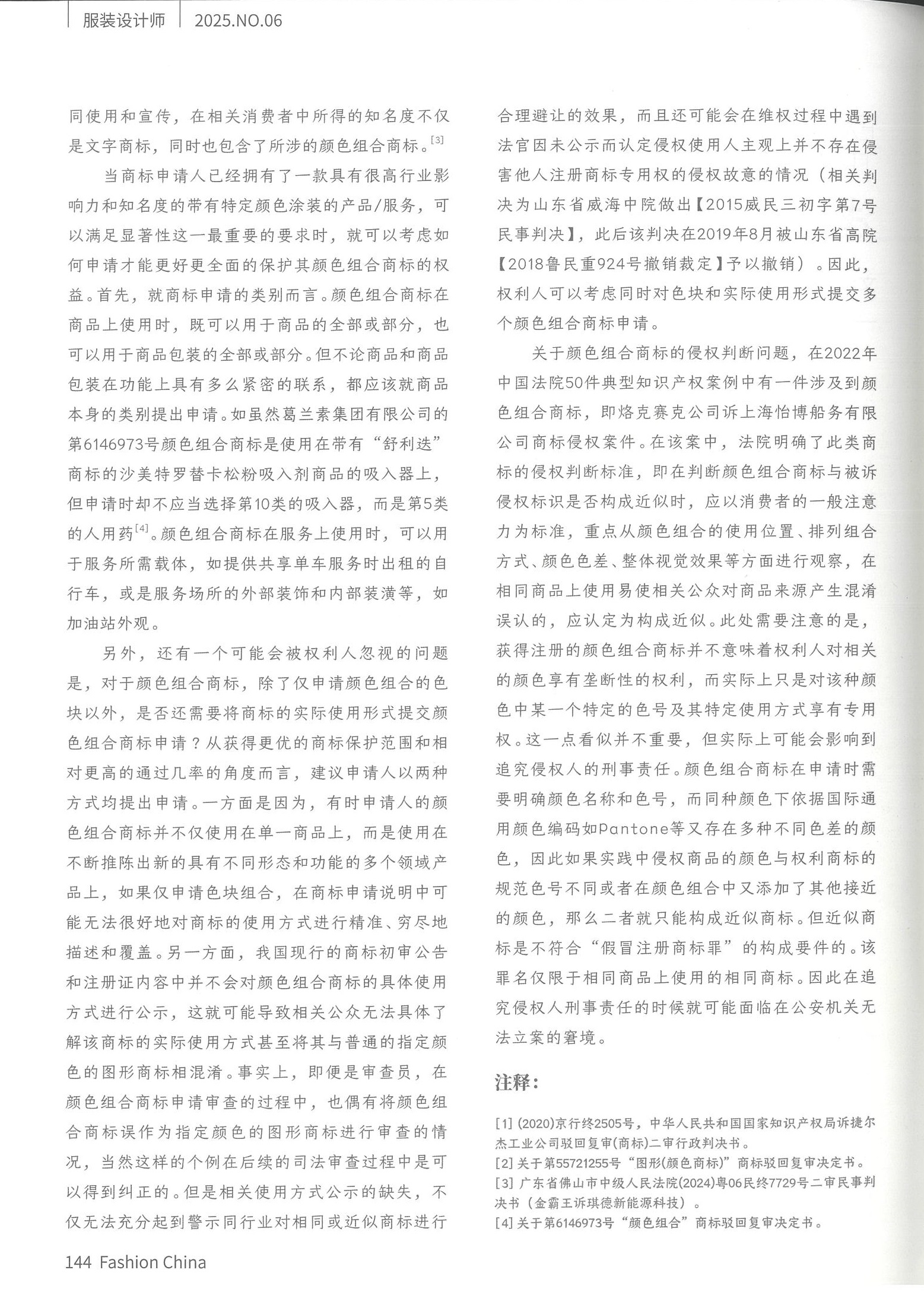 集佳文章《淺議顏色組合商標申請和保護的若干問題》在《服裝設計師》上發表