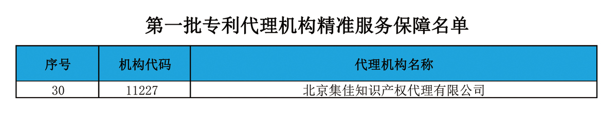 集佳入選第一批專利代理機構精準服務保障名單