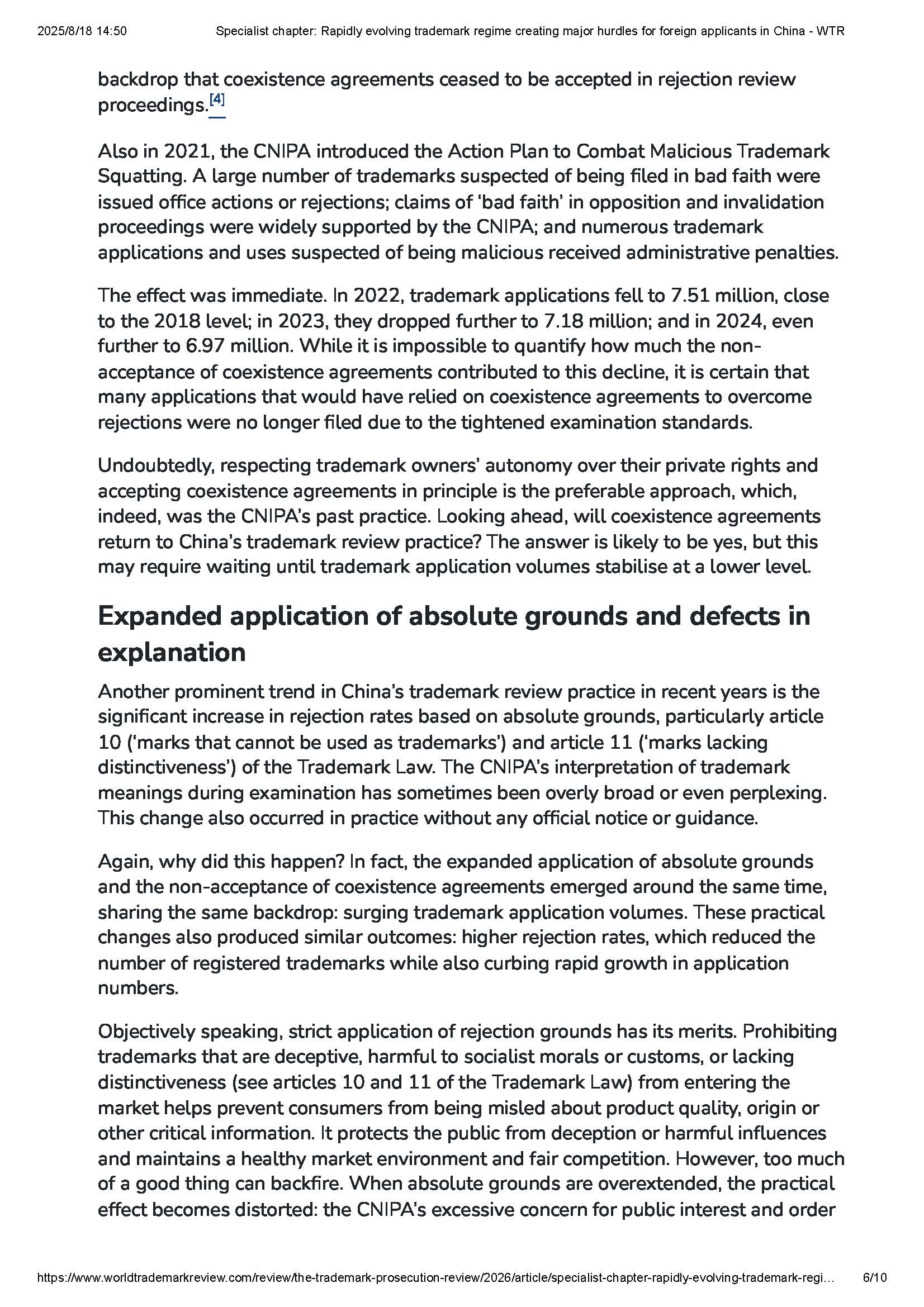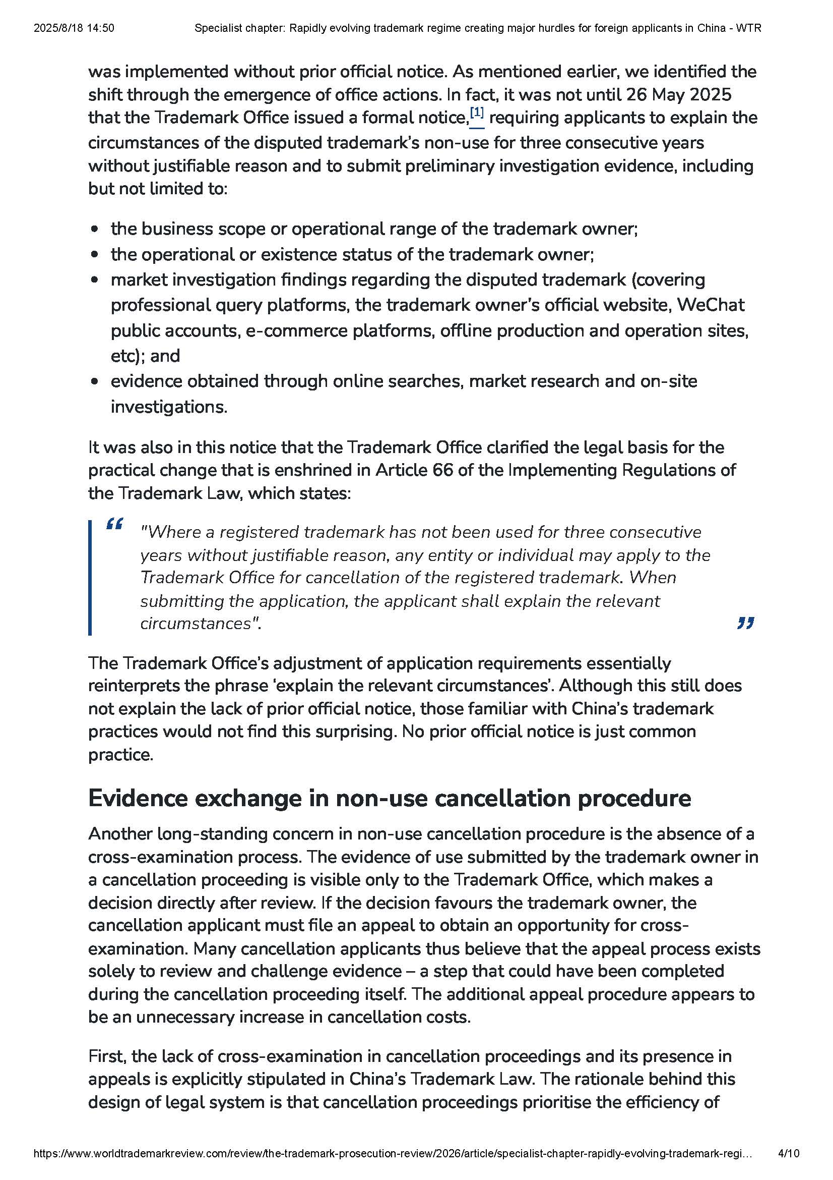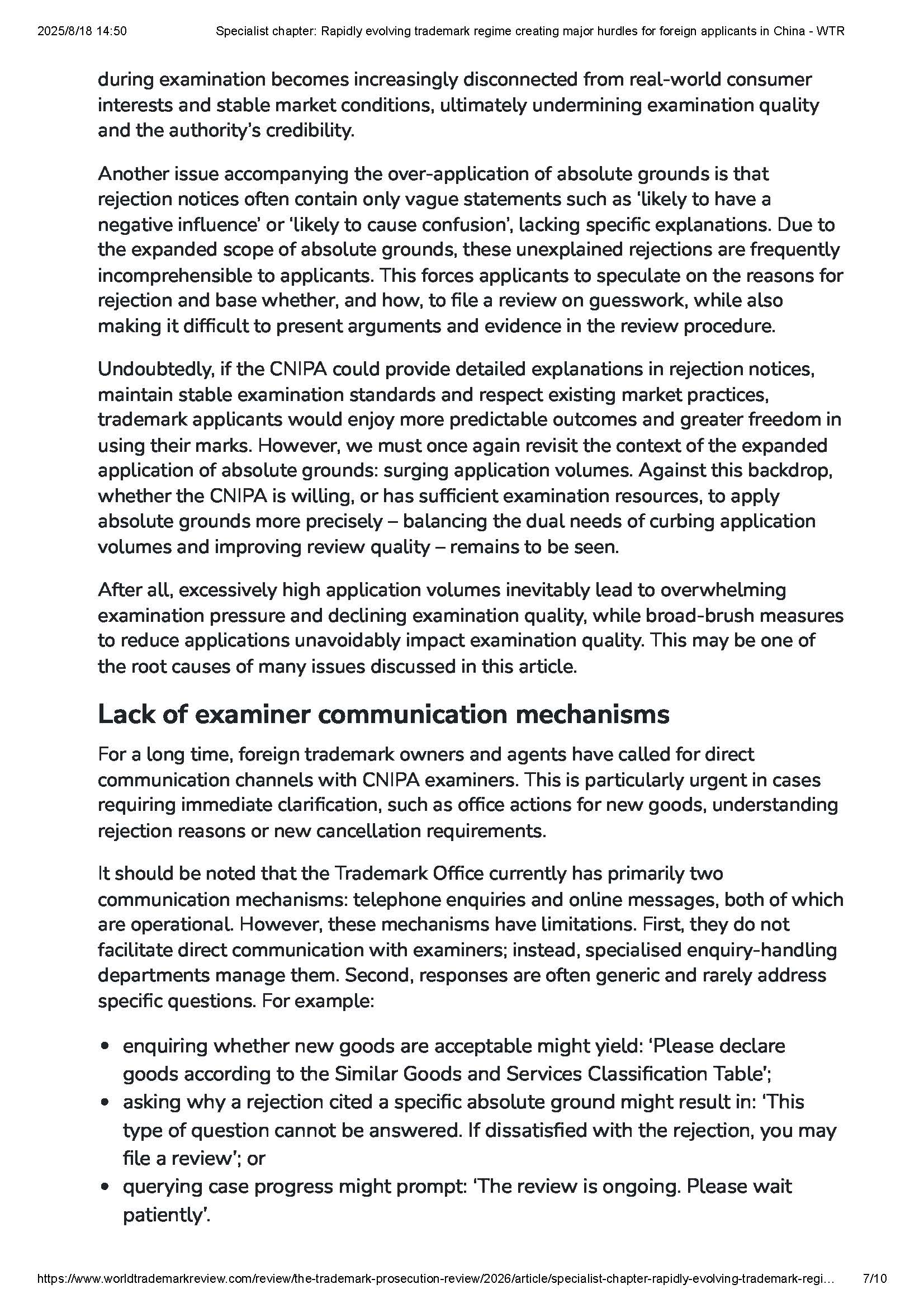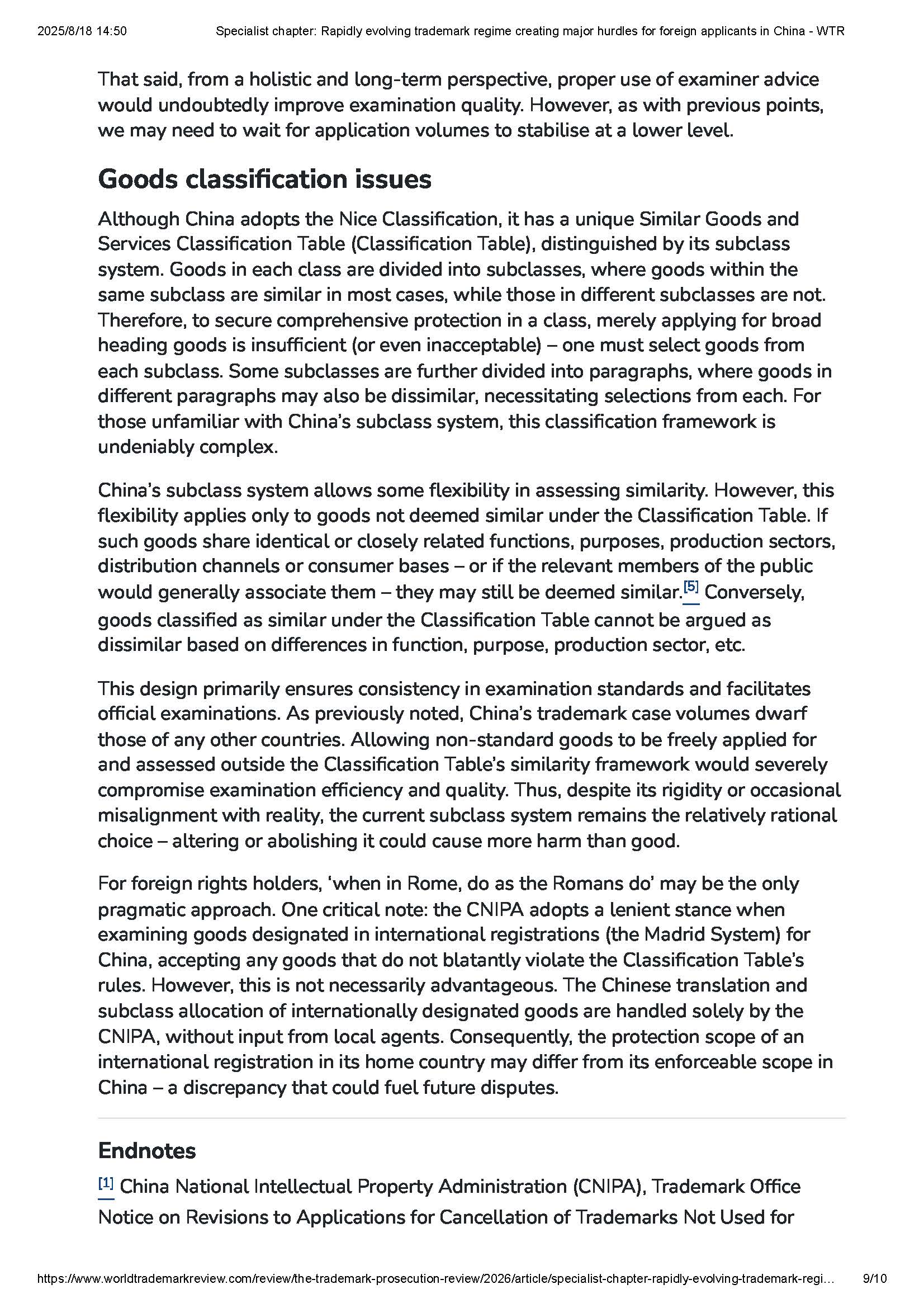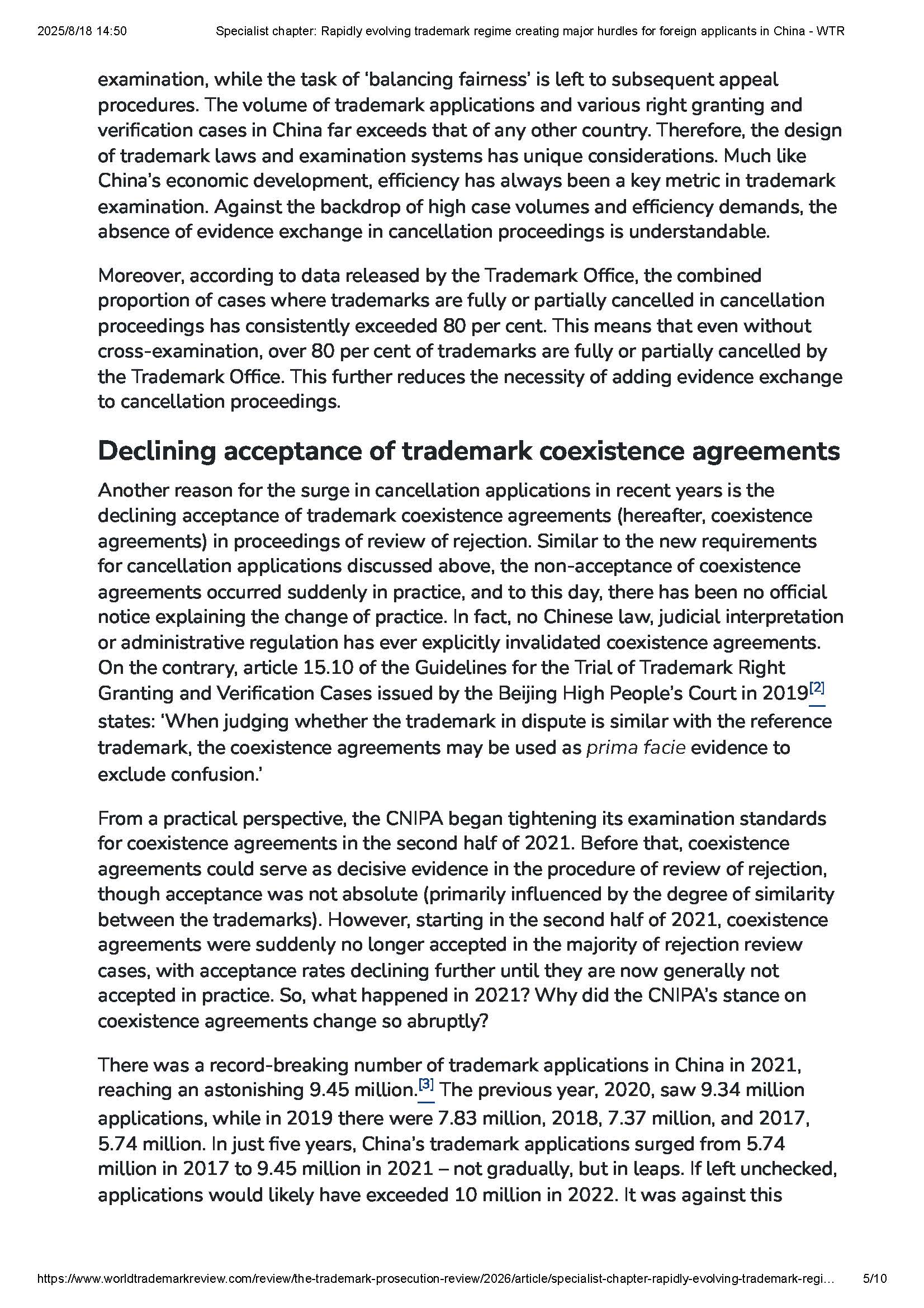 集佳文章《Specialist chapter: Rapidly evolving trademark regime creating major hurdles for foreign applicants in China》在《WTR》網站發表
