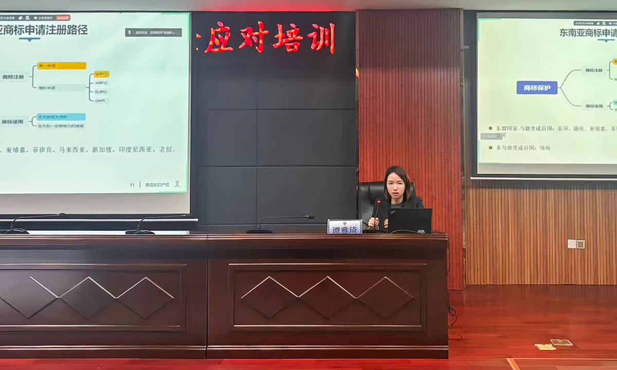 2025年11月21日,深圳市市場監督管理局及中國國際貿易促進委員會深圳市委員會舉辦“東南亞知識產權戰略布局與風險應對”培訓,集佳合伙人譚雅琦律師應邀為培訓活動授課。